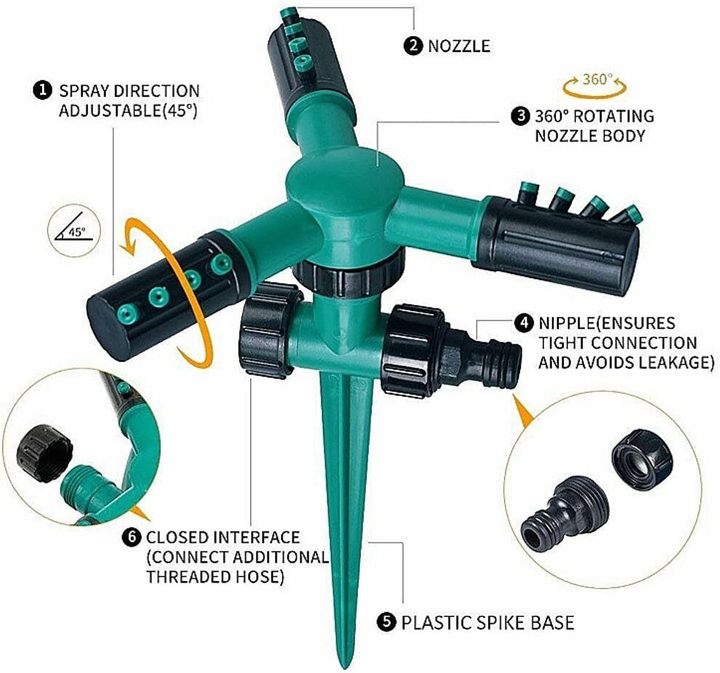 Dale a tu jardín el cuidado perfecto con este innovador aspersor de riego giratorio de 360°. Su diseño inteligente permite una cobertura uniforme, asegurando que tu césped, plantas y flores reciban la cantidad exacta de agua que necesitan.
