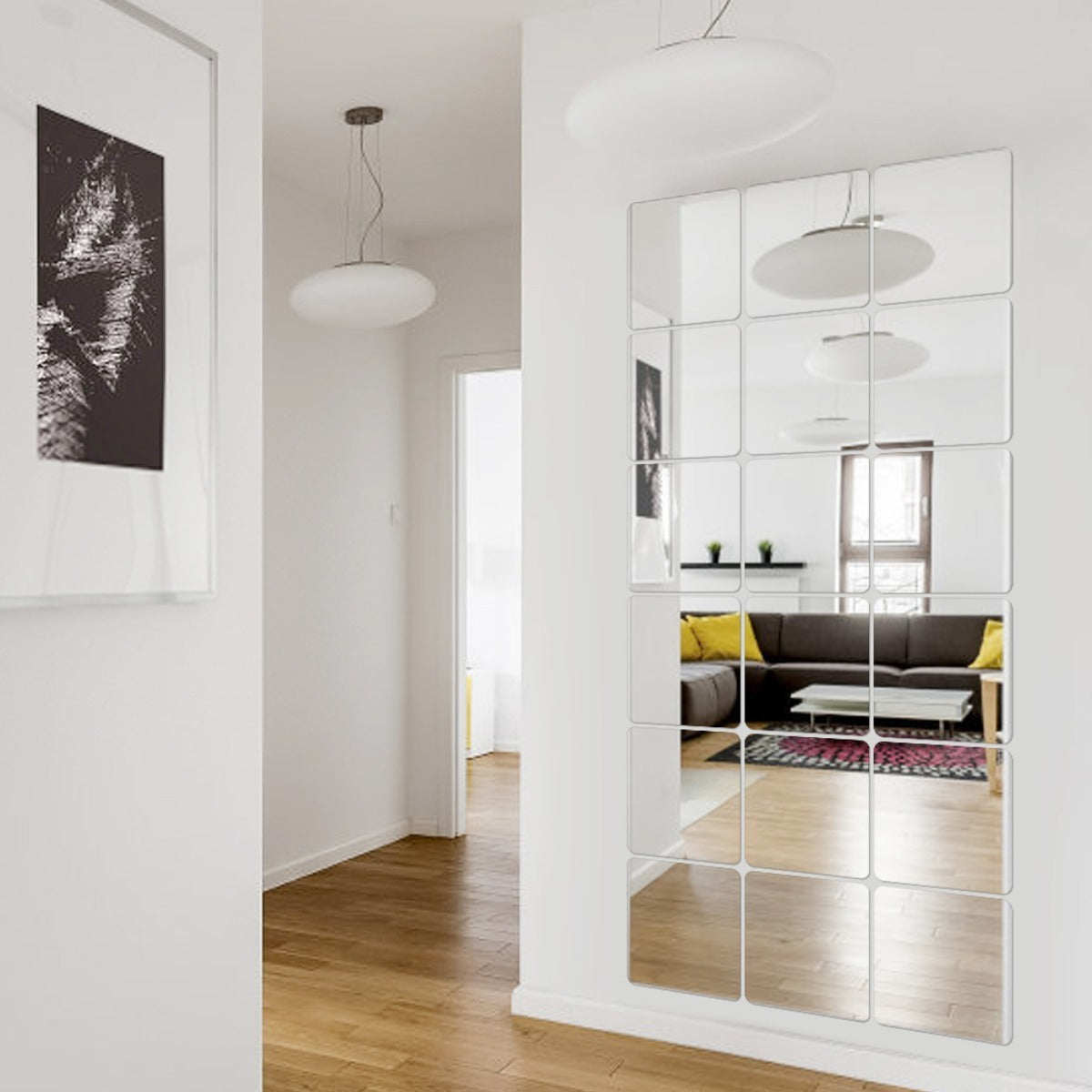 Dale un toque moderno y sofisticado a tus espacios con este set de 10 espejos cuadrados. Su diseño versátil y fácil instalación te permitirá transformar cualquier ambiente con un efecto de amplitud y luminosidad.